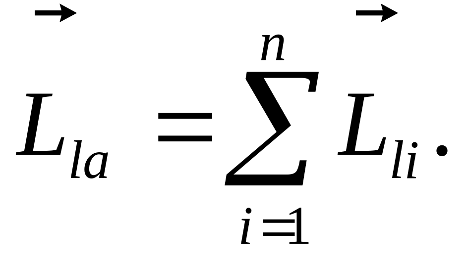 Аналогічно, вектором орбітального моменту імпульсу атома називають векторну суму орбітальних моментів імпульсу всіх електронів атома: