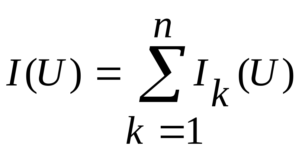 Для получения результирующей характеристики при параллельном соединении нескольких нелинейных элементов задачу решают аналогично. При этом используют первый закон Кирхгофа для нелинейной цепи: