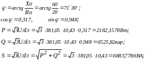 Угол сдвига между фазным напряжением и током можно определить по комплексному сопротивлению нагрузки: