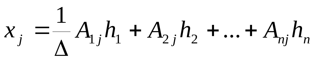 Согласно теореме замещения, это выражение = определителю кот. получается из определителя ∆ заменой в нем j-того столбца на столбец из свободных членов