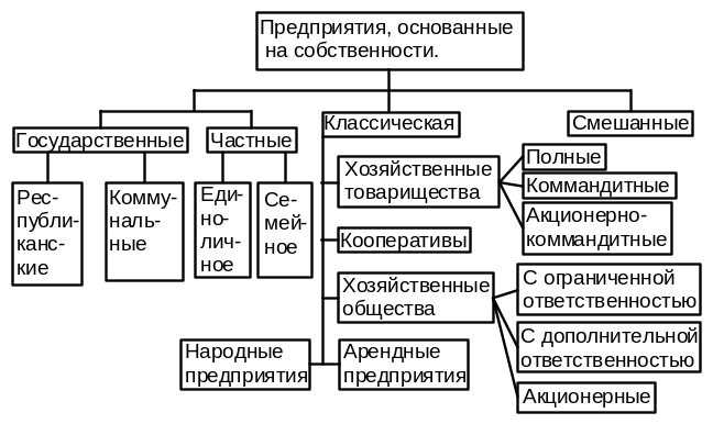 Частные предприятия принадлежат одному гражданину или членам его семьи на праве собственности. Семейные предприятия основываются на общей собственности всех членов семьи. Наиболее простой хозяйственно-правовой формой, основанной на коллективной собственности, является хозяйственное товарищество. Хозяйственное товарищество характеризуется тем, что имущество его формируется за счет вкладов нескольких гражданских (юридических) лиц, которые объединяются для совместной хозяйственной деятельности на основе договора между ними.