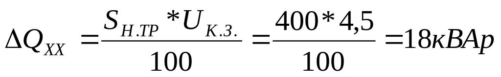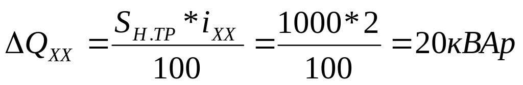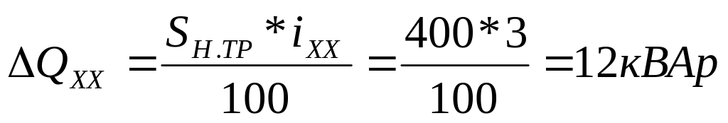 Определим потери в трансформаторе. Реактивные потери холостого хода: