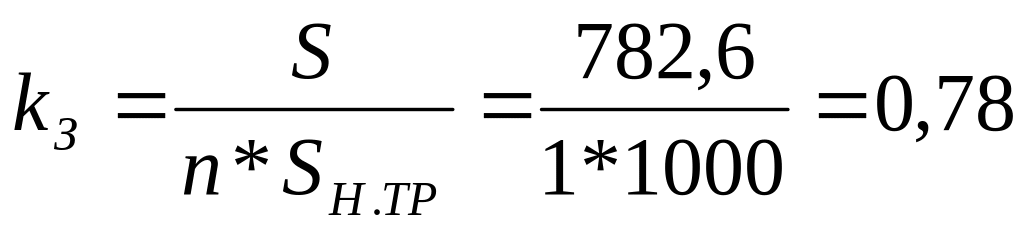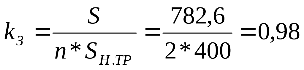 где, к3— коэффициент загрузки трансформатора, рассчитывается: