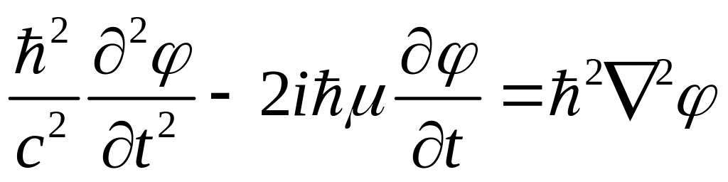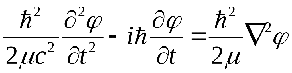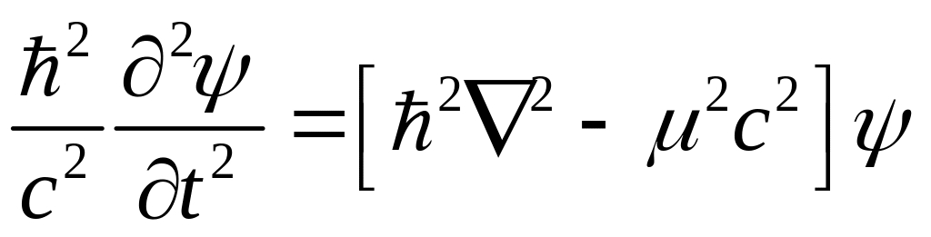 Чтобы получить волновое уравнение для движения частиц с релятивистскими скоростями, нужно исходить из релятивистской связи между энергией и импульсом