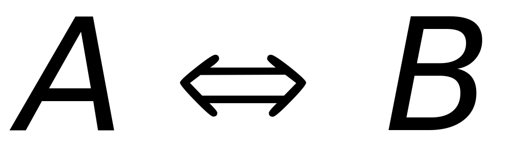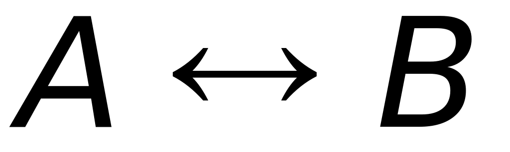 4. Из высказываний А, В можно образовать следующее высказывание: "А тогда и только тогда, когда В". Например, треугольник является равносторонним тогда и только тогда, когда все его углы равны между собой. Синонимами служат фразы: "А в том и только в том случае, когда В", "А необходимо и достаточно для того, чтобы выполнялось В", "А равносильно В", "А эквивалентно B".