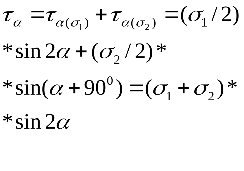 Следовательно наибольшее касательное напряжение действует под углом в 45 град к главным.