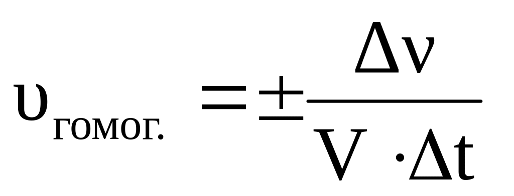 Гомогенная реакция протекает во всем объеме системы и ее скорость зависит от объема системы.