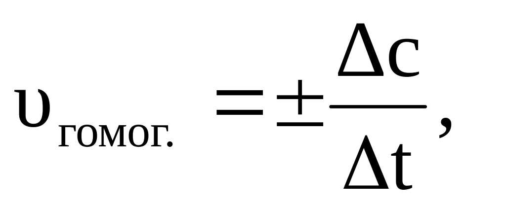 Скоростью химической реакции называется число актов химического взаимодействия, происходящих в единицу времени в единице объема системы (это для гомогенных реакций) или на единице поверхности раздела фаз (это для гетерогенных реакций):
