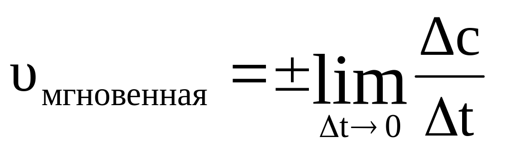 Мгновенная или истинная скорость реакции – это скорость реакции в данный момент времени, когда t стремится к нулю, то есть: