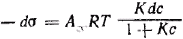 После интегрирования получим уравнение Щищкрвского, характеризующее поверхностное натяжение растворов ПАВ в зависимости от концентрации: