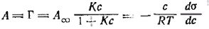 При адсорбции или растекании вещества на поверхности образуется поверхностная (адсорбционная) пленка этого вещества. Полученные ранее уравнения изотерм поверхностного натяжения для ПАВ позволяют перейти к уравнениям состояния поверхностных пленок. При очень малых концентрациях ПАВ распределение вещества между раствором и поверхностным слоем описывается законом Генри, а зависимость поверхностного натяжения от концентрации следует указанному выше соотношению. Если в этом соотношении обозначить и учесть адсорбционное уравнение, то получим: