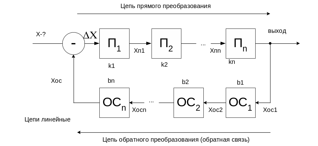 Функции преобразования отдельных блоков могут быть линейными и нелинейными. Пусть все функции линейные:
