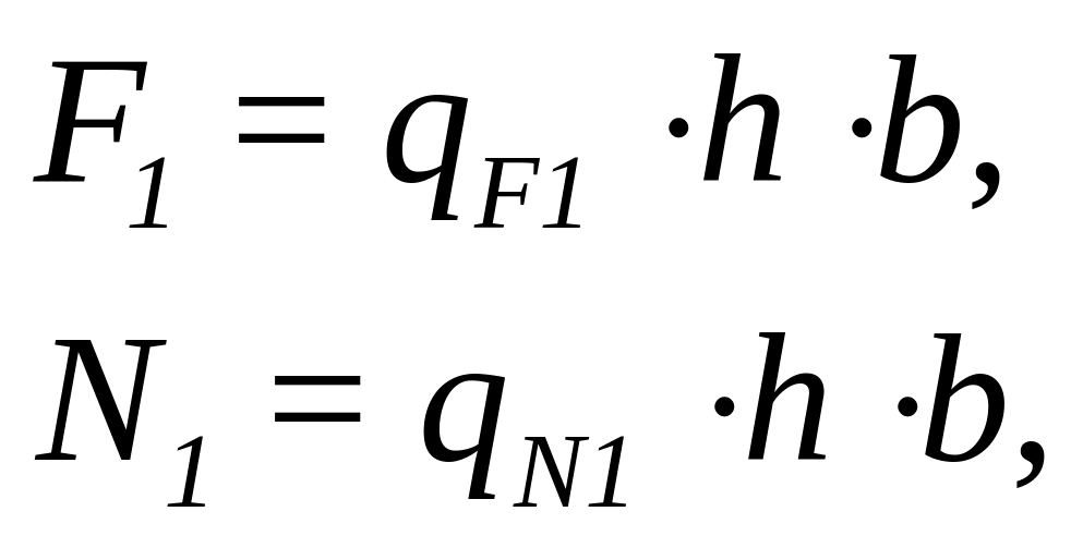 Силу трения F1 и силу нормального давления N1 на задней поверхности резца определим через касательное qF1 и нормальное qN1 на задней поверхности:
