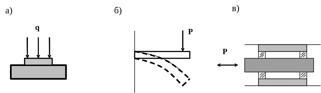 Преобразователи, в кот используется прямой пьезоэффект (а), применяют в приборах для измерения силы, давления, ускорения. У них обеспечивается большая жесткость и, как следствие, высокая собственная частота.