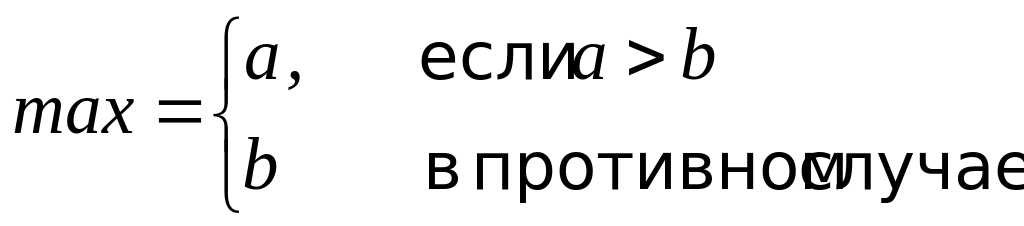 Даны переменные a и b ( a b ). Переменной max присвоить численное значение наибольшей переменной. Математическая формулировка задачи: