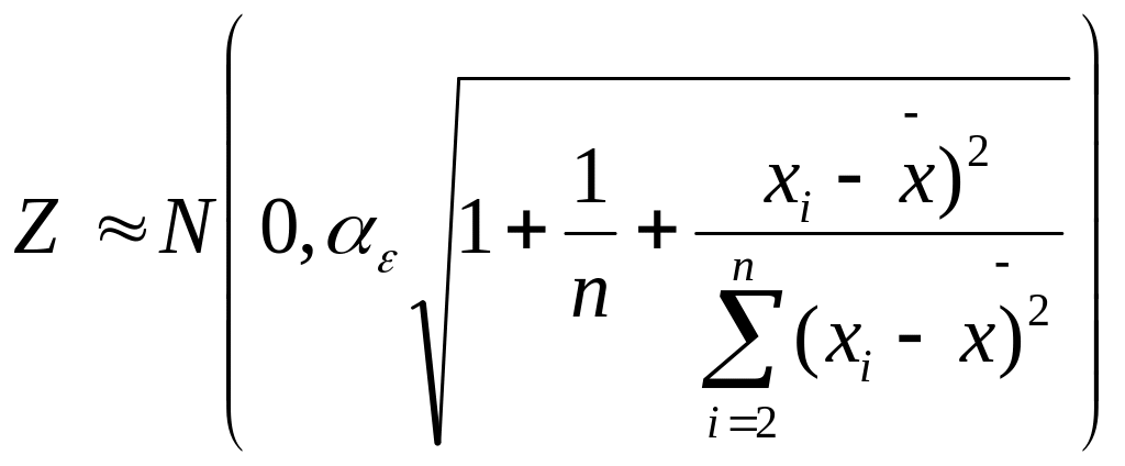 Інколи на практиці більш важливо знати дисперсію для зележної змінної, ніж її середнє значення.Це дає змогу визначити допустимі межі для конкретного значення У. Нехай нас цікавить можливе значення залежної змінної У = ур за фіксованого значення регресора Х = хр .