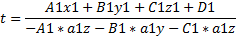 A1x1+B1y1+C1z1+D1=-A1*t*a1x-B1*t*a1y-C1*a1z