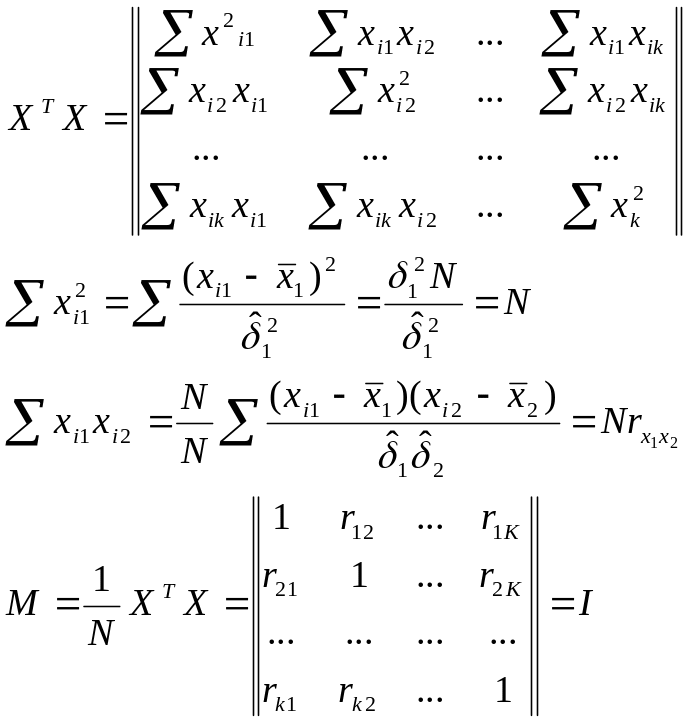 Корреляционная матрица М позволяет вычислить коэффициент множественной корреляции, который указывает на то, какая доля факторов в рассеивании рассматриваемых переменных является общими со всеми остальными.