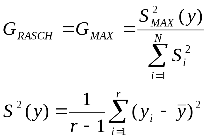 Критерий Кохрена есть отношение максимальной дисперсии из всех точек наблюдения к сумме дисперсий в этих точках. Критерий проверяется следующим образом: