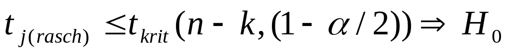 Расчетное значение сравнивается с критическим, взятым из таблицы распределения Стьюдента при заданном уровне значимости.