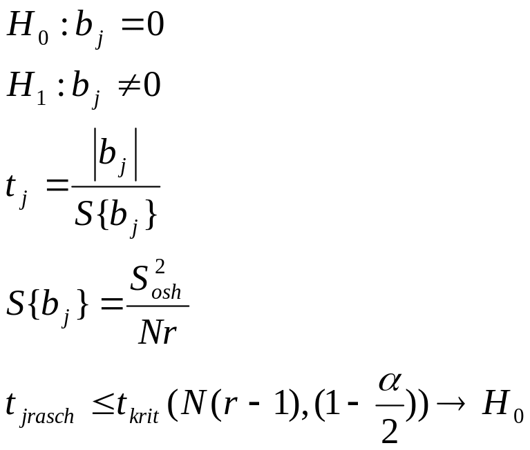Проверка значимости коэффициентов модели. В этом случае проверяются гипотезы по критерию Стьюдента: