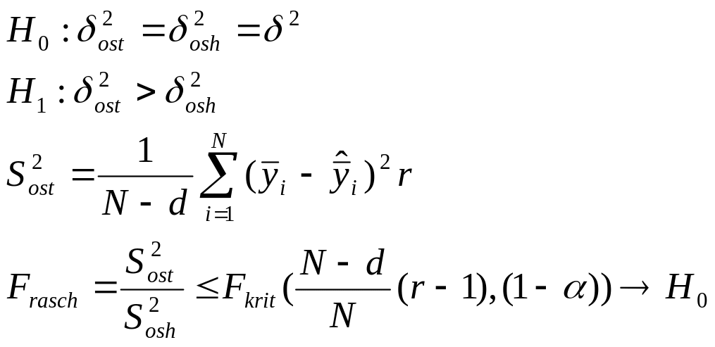 Проверка адекватности модели (пригодность для описания данных). Для решения данной задачи используется статистика Фишера, которая проверяет следующие гипотезы: