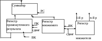 n р. - выход младшего (n-го) разряда регистра (используется при умножении с младших разрядов множителя).