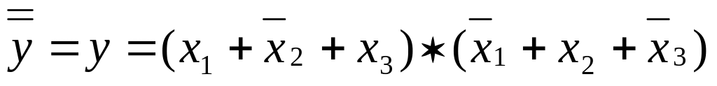 В этой записи представлена дизъюнкция тех наборов, которые не использовались в записи функции y3. Возьмем отрицание правой и левой частей полученного уравнения и применим к правой части правило Де Моргана.