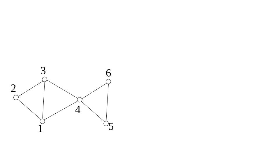 Пример 1. Определить, существует ли гамильтонов цикл и гамильтонова цепь в показанном на Рис.4.20 графе G = (V, X), V = (1, 2, 3, 4, 5, 6), X = ((1, 2), (1, 3), (1 ,4), (2, 3), (3, 4), (4, 5), (4, 6), (5, 6)).