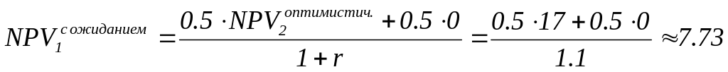 прогноз относительно ожидаемого чистого дохода на все последующие годы (инфляция отсутствует): с вероятностью ½ чистая выручка составит 3 млн. рублей и с вероятностью ½ выручка составит 1 млн. рублей;