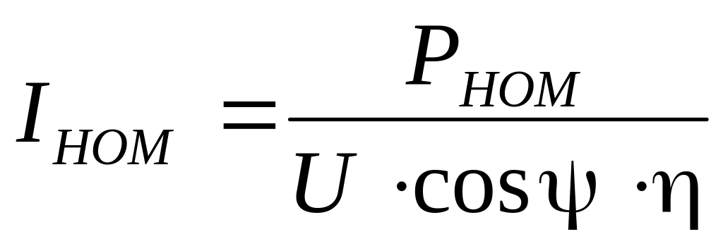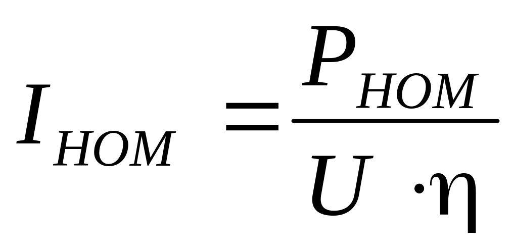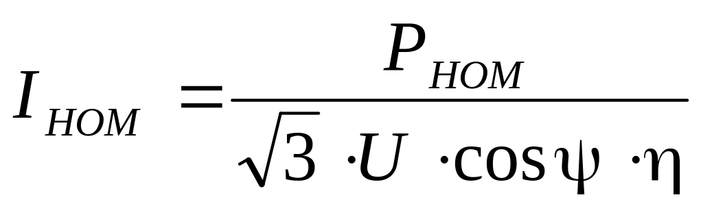 где Р – номинальная мощность электроприемника (или группы электроприемников), кВт; Uном – номинальное напряжение (для электроприемников переменного тока – линейное напряжение сети), кВ; соs f – коэффициент мощности; h – КПД электродвигателя.