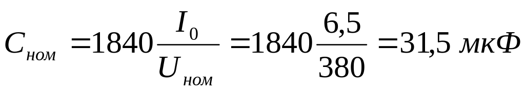 Т.о. требуются конденсаторы емкостью 3X157 мкФ. Выбираем трехфазный конденсатор типа KM1-0,5-13-3, 500 В, 3X165 мкФ.