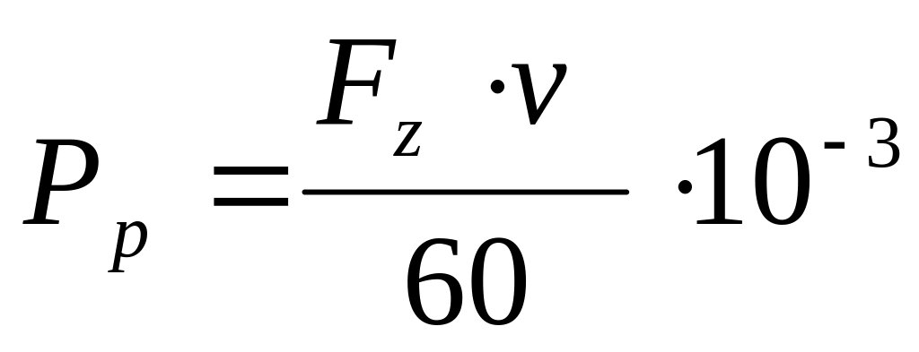 где Fz – сила резания, кН; Vр – скорость резания, м/мин