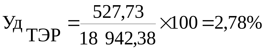 Удельный вес топливно-энергетических ресурсов в себестоимости детали Уд.ТЭР, % рассчитывается по формуле