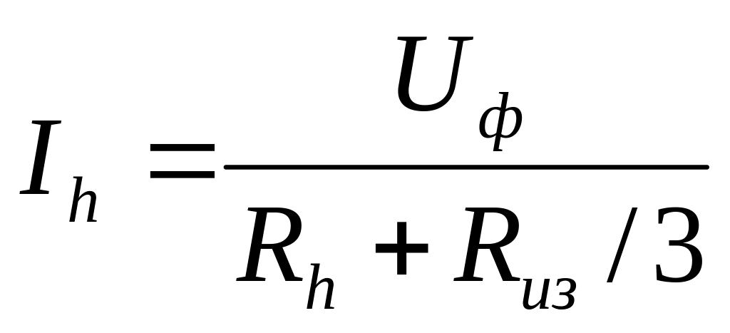 (Rиз - сопротивление изоляции одной фазы сети относительно земли, Ом).