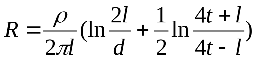 3.Приведіть формулу для розрахунку опору розтікання струму для одиночного заглибленого електроду.
