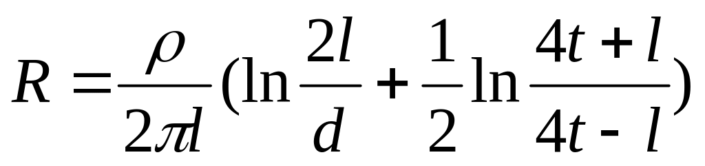 - •Задача. Визначити опір одиночного вертикального заземлювача довжиною 3м, діаметром 63мм, заглибленого в землю на 0,8м, якщо питомий опір грунту з врахуванням коефіцієнту сезонності складає 300 Ом∙м.