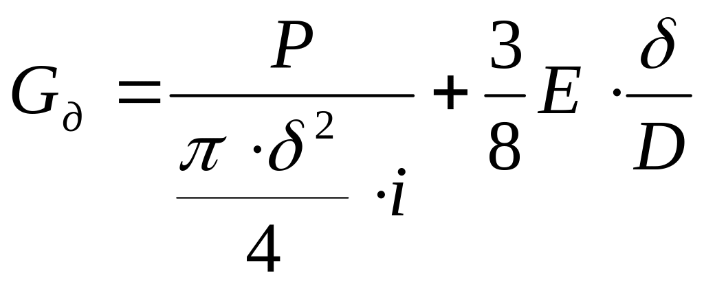 Р – діюче зусилля, кг; δ – діаметр дротинки, см; і – число дротин; 3/8 – к-нт Баха; Е = 2,1·106 кг/см2 – модуль пружності.