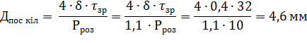 Розрахувати діаметр посадочного кільця розривної пластини насосу з робочим тиском – 10МПа. Товщина пластини із латуні – 0,4 мм. Допустимі напруження матеріалу на зріз – 32МПа.