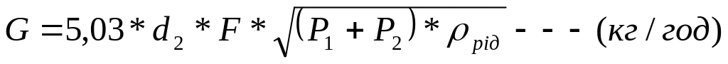 P1,P2 - тиск максимальний , надлишковий перед клапаном і після P2