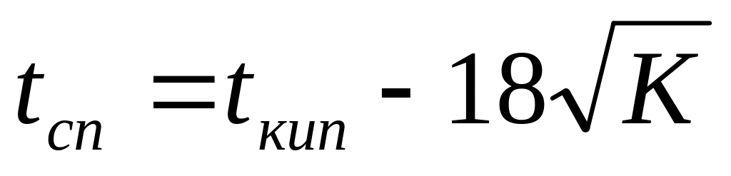 К – постійний експериментальний коефіцієнт, якщо величина К >0 рідина горюча, К<0 рідина негорюча .