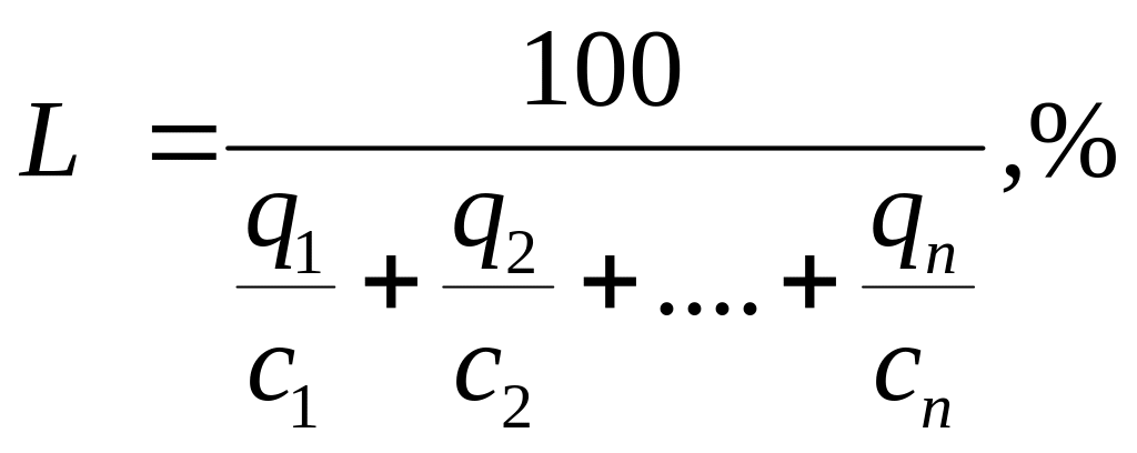 сn – верхнє або нижнє граничне значення горючих компонентів у процентному відношенні.