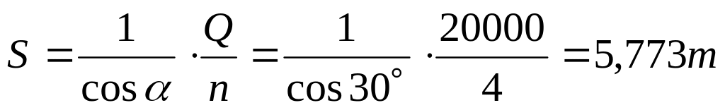 Задача: Розрахувати сталевий строп для підйому вантажу 20т. Число віток стропа n = 4. Кут стропа з вертикаллю α = 30°. Коефіцієнт запасу міцності К = 10. σв = 160кг/мм2.