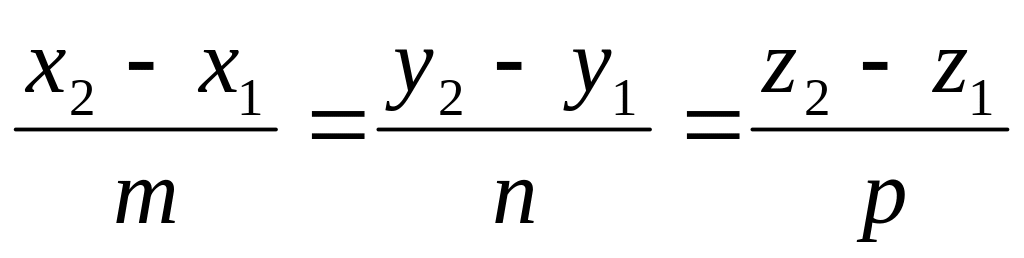 Если на прямой в пространстве отметить две произвольные точки M1(x1, y1, z1) и M2(x2, y2, z2), то координаты этих точек должны удовлетворять полученному выше уравнению прямой: