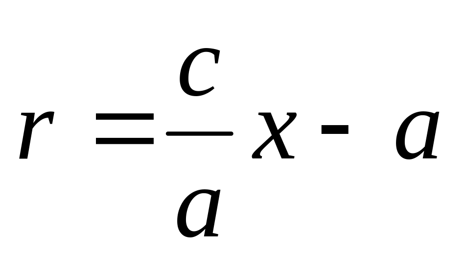 Тогда т.к. с/a = e, то r = ex – a.