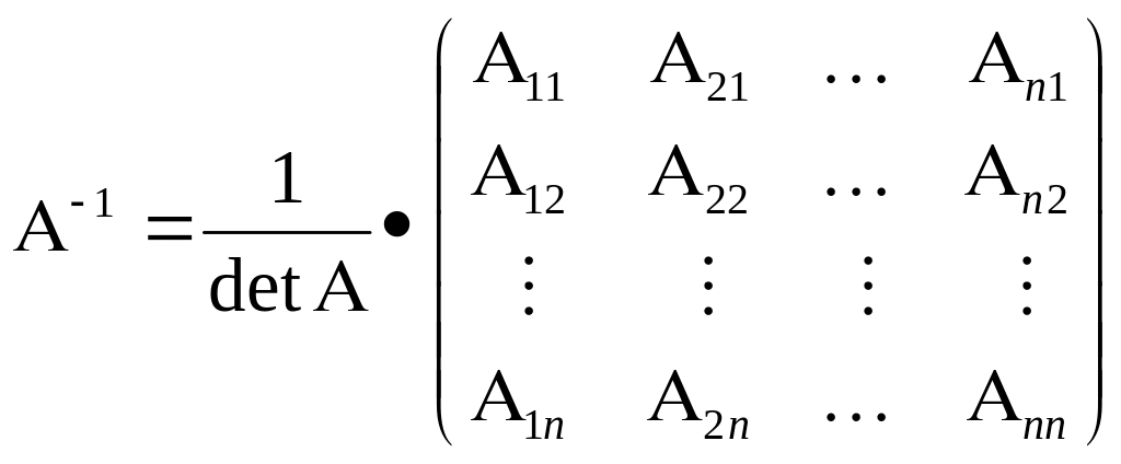 где Е - единичная матрица того же самого порядка, что и матрица А, то матрица Х называется обратной к матрице А и обозначается А-1.