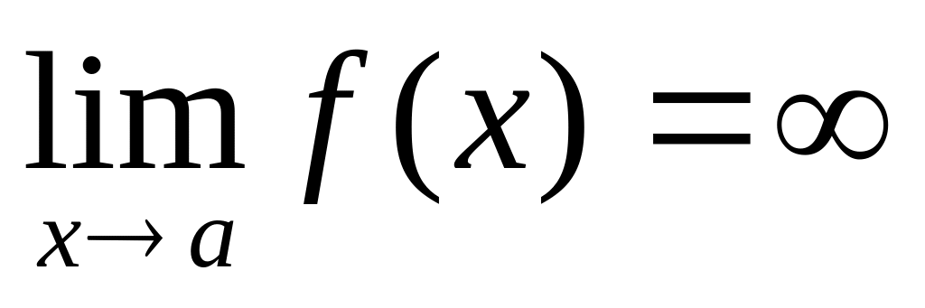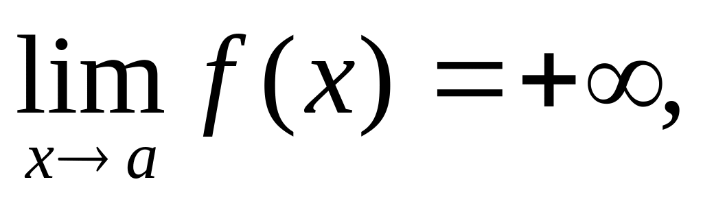 Определение. Предел функции f(x) при ха, где а- число, равен бесконечности, если для любого числа М>0 существует такое число >0, что неравенство