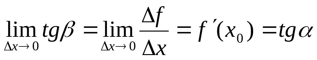 где - угол наклона касательной к графику функции f(x) в точке (x0, f(x0)).