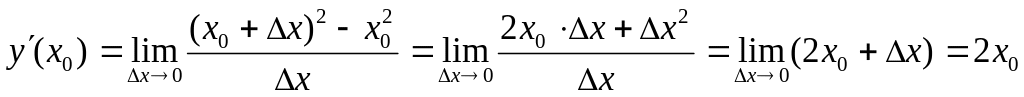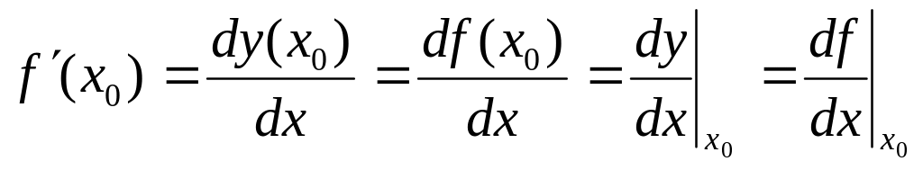 Определение. Производной функции f(x) в точке х = х0 называется предел отношения приращения функции в этой точке к приращению аргумента, если он существует.