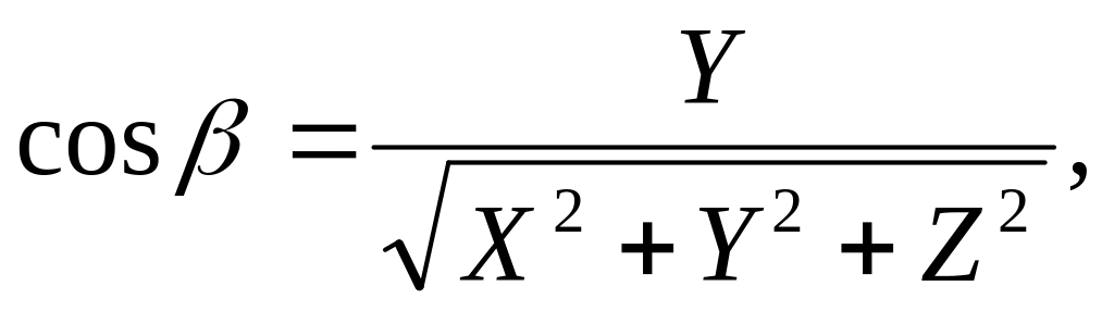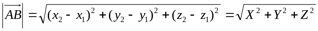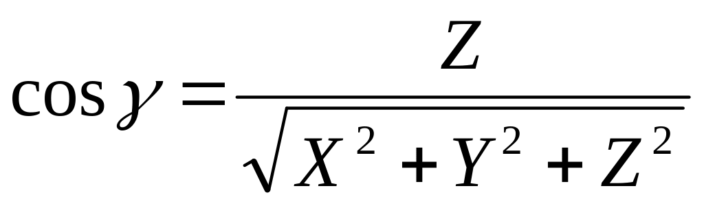 Из полученных формул и формулы нахождения длины вектора находим формулы для направляющих косинусов вектора :